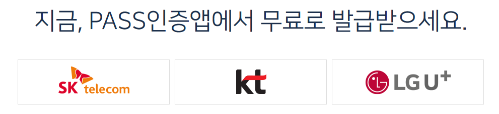 가장 먼저 해야 할 일은, 본인의 통신사에 맞는 PASS 앱을 스마트폰에 설치하는 거예요.