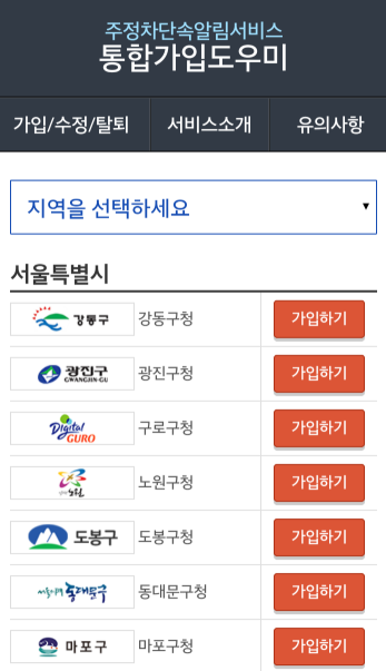 주차단속 알림 서비스 모바일 앱 신청방법