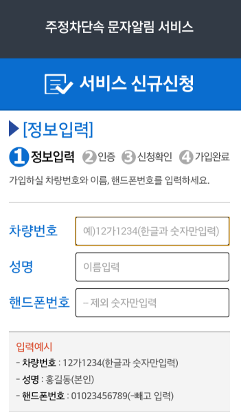 주차단속 알림 서비스 신청하기