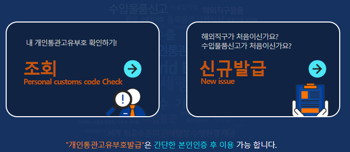 "개인통관고유부호발급"은 간단한 본인인증 후 이용 가능 합니다.