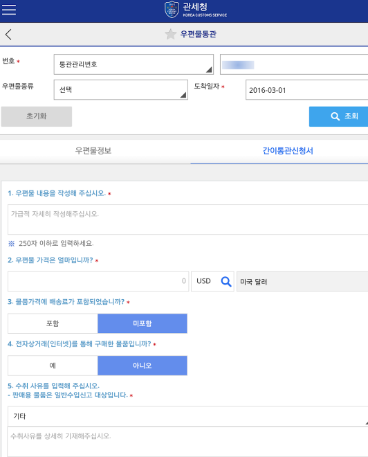 해외직구 목록통관 조회