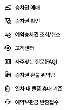한국철도공사, 레츠코레일, 승차권 예매, 기차여행상품, 운행정보 안내