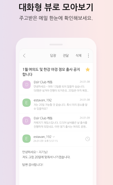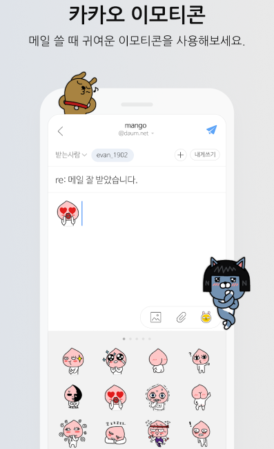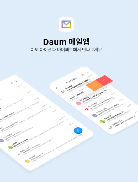앱 하나로 모든 메일 관리 끝! Daum 메일 뿐 아니라 네이버, 구글 메일까지 연결해 쓸 수 있습니다! 지금 바로 설치해 보세요.