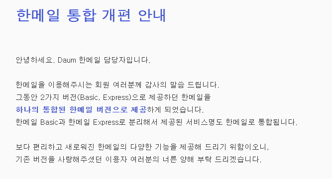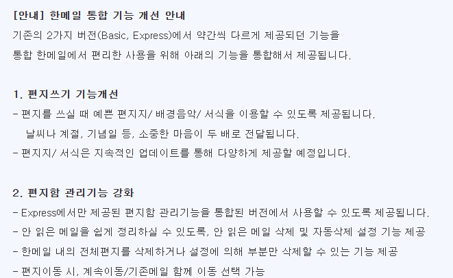 - 한메일은 다음 메일과 통합되었지만 여전히 유효하게 사용 가능함