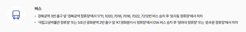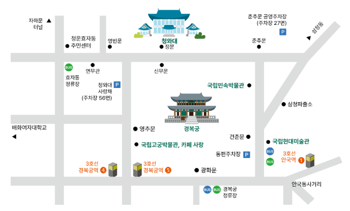 - 주차장 없음, 대중교통 권장 (지하철 경복궁역 4번 출구 도보 약 10분)