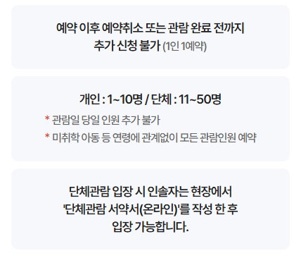 - 1인당 6명까지 동반 관람 가능, 관람은 무료