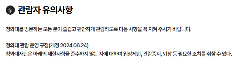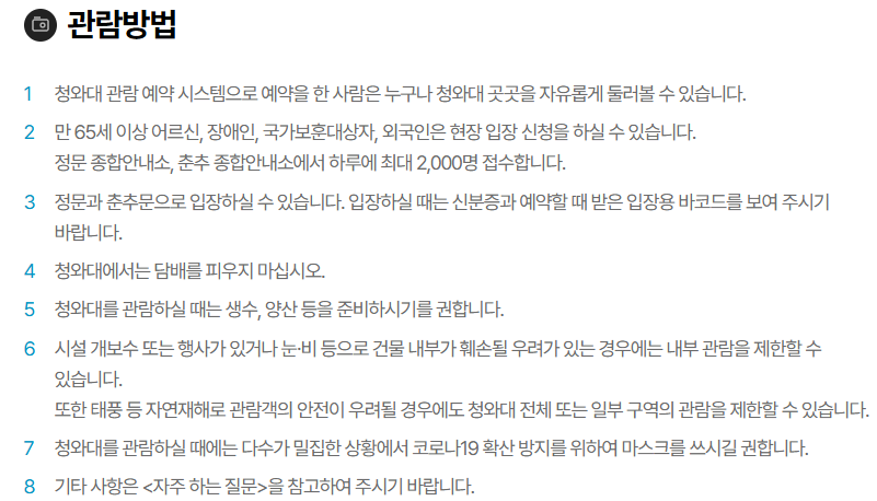꼭 알아두세요! 청와대 관람 유의사항